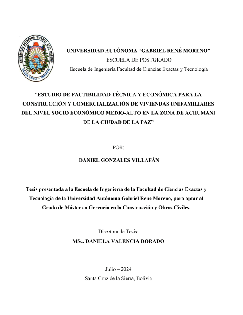 - Unidad de Postgrado: Escuela de Ingeniería de la Facultad de Ciencias Exactas y Tecnología (UAGRM)